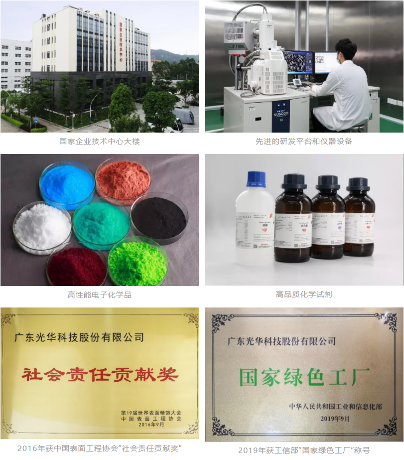 創(chuàng)新驅動,綠色發(fā)展。光華科技深耕化工行業(yè)40年來,始終堅持以市場為導向,應行業(yè)發(fā)展及市場需求不斷進行技術創(chuàng)新,為全球客戶提供優(yōu)質產品及服務,積極推動專用化學品行業(yè)的進步。在創(chuàng)新驅動方面,光華科技視研發(fā)創(chuàng)新為企業(yè)之本,組建起了完善的研發(fā)體系,引進國際化高端人才及技術,開展5G及其他前沿技術/產品的研發(fā),助力客戶提升競爭優(yōu)勢。目前,光華科技已擁有2個國家級科研平臺、4個省部級科研平臺、10余所產學研及產業(yè)鏈合作單位,承擔/參與了國家及省部級項目30余項,發(fā)明專利超170件,科研成果獲得國家及省部級獎項15 項。綠色發(fā)展方面,光華科技按照循環(huán)經(jīng)濟的社會發(fā)展路線,對公司生產經(jīng)營實施循環(huán)經(jīng)濟戰(zhàn)略,2016年公司獲得“社會責任貢獻獎”榮譽,2018年獲得“廣東省省級清潔生產企業(yè)”、2019年9月獲得“廣東省節(jié)水型企業(yè)”,同年獲得工信部“國家綠色工廠”認定,推動行業(yè)可持續(xù)發(fā)展。